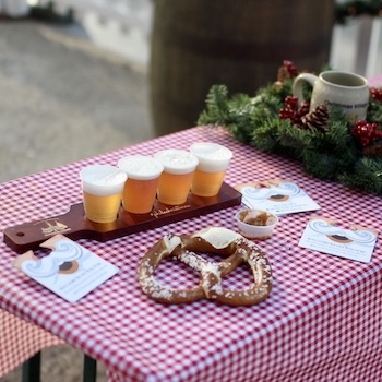 Back by popular demand: our Beer Flight Tastings! Interested to taste not just one, but all 4 beers we have on draft? Then our beer flights are perfect for you - book the flight online and get a Bratwurst with Sauerkraut topping, dished out sizzling hot from our charcoal Schwenk Grill on top! What more can we say? Yes, a German Pretzel with Düsseldorf mustard dips is included as well.